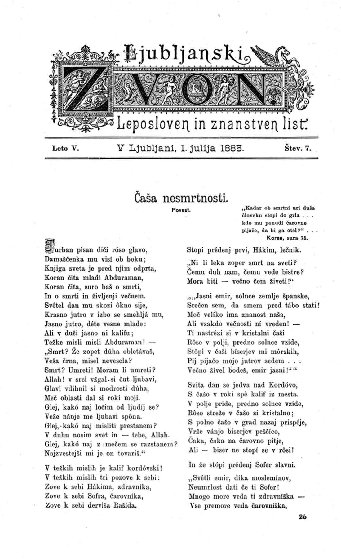 Foto: Čaša nesmrtnosti, Ljubljanski zvon 5/6, 1885 (dLib), Anton Aškerc, 1903 (dLib)